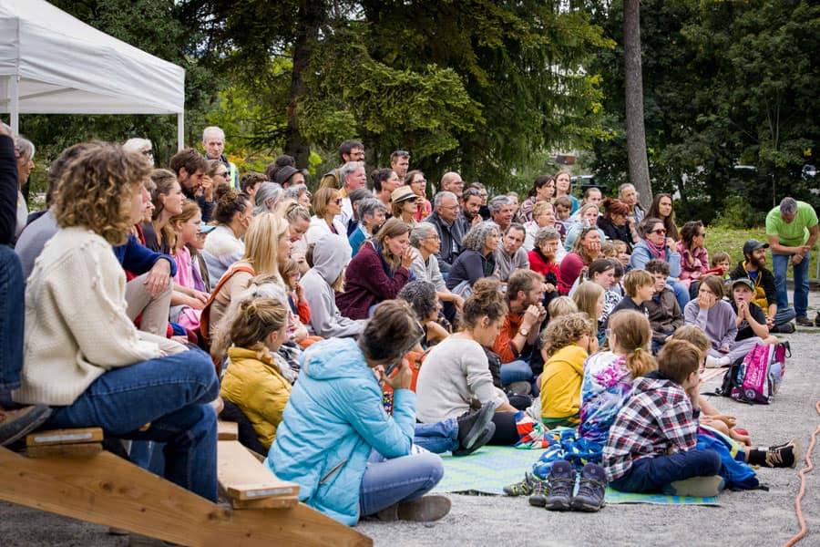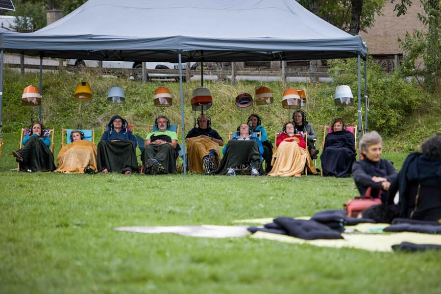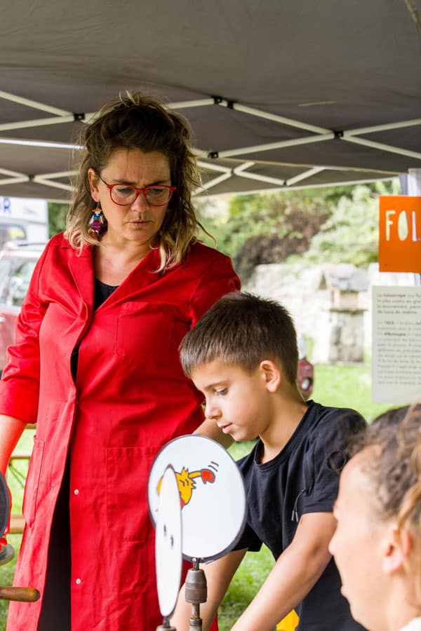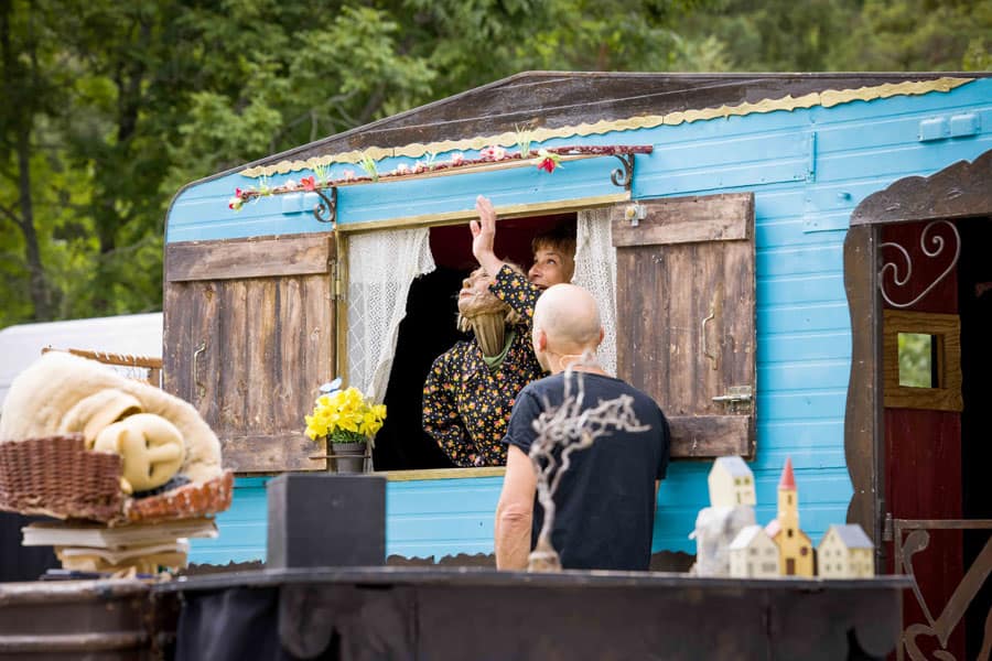 Puis, le temps était à une déambulation intuitive entre caravanes, à la rencontre d’autres propositions artistiques. Vox populi de la Cie Abernuncio offrait une interprétation saisissante de vérité par une comédienne, de témoignages recueillis sur différents thèmes, tandis que les amoureux de l’image animée pouvaient découvrir les jeux d’optique à l’origine de celle-ci grâce à Esgourdes & Mirettes de la compagnie Petit chaudron grandes oreilles, ou que La Sérendipe proposait de goûter au pouvoir des mots, en toute liberté, au moyen de la poésie contemporaine.