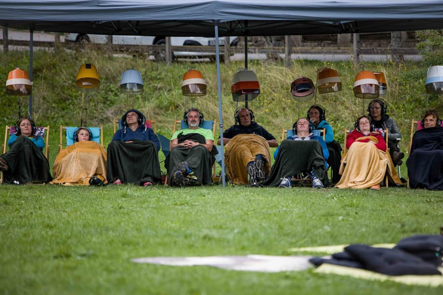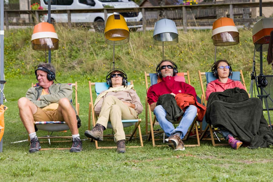 Installez-vous d’abord confortablement dans un transat, la tête sous un séchoir. Ouvrez alors grandes vos oreilles à un montage sonore issu d’une récolte de témoignages. Puis, entrez dans la caravane… Il ne vous reste plus qu’à vous laisser saisir par des instantanés de vies initiés par une expression populaire : “Avoir le trouillomètre à zéro”, “Faire le joli cœur”, “Être vent debout”, ”Perdre le nord”… Piochez dans le répertoire d’histoires !
