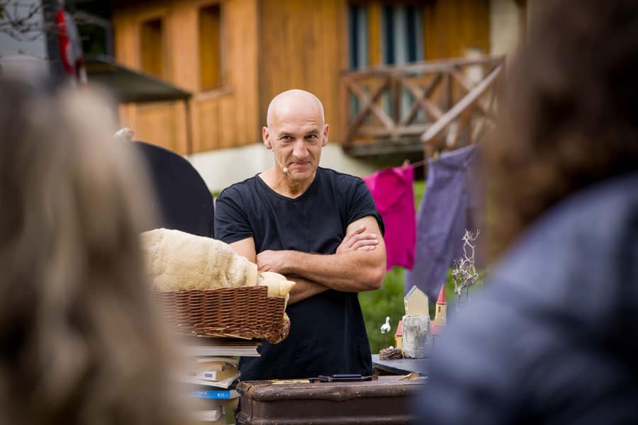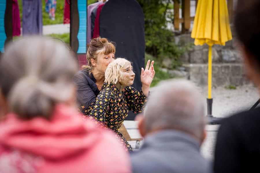 Place au spectacle en début d’après-midi avec Josette et Mustapha de la Cie La Cour singulière. Une vieille dame, Josette, évoque ses souvenirs de femme du 20ème siècle, des bribes de mémoire saillantes ancrées en elle par la puissance des émotions vécues : une vie. Dans un contrepoint parfois ironique, son chat, Mustapha, distille des aphorismes bien sentis. Théâtre de marionnettes, jeu des comédiens, beauté du texte : émotion garantie.