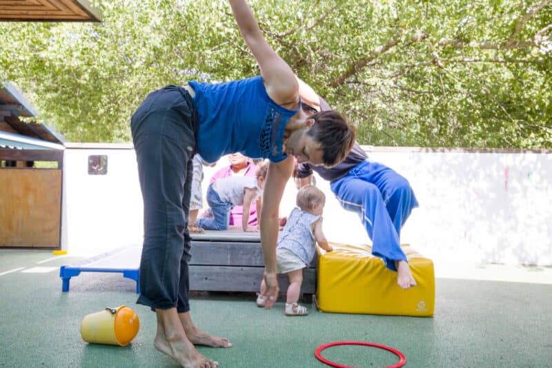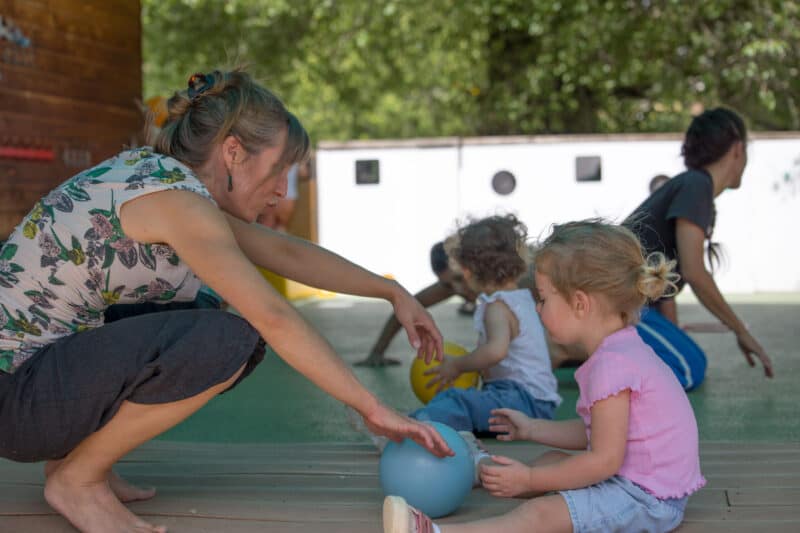 Pour les plus grands, les espaces verticaux ont été utilisés comme des surfaces de création et de mouvement. Les plus petits ont observé et accueilli les corps en mouvement dans différents espaces, proches ou lointains. Les enfants ont traversé toutes les étapes de la marche avec des intentions chorégraphiques, explorant les appuis, l’équilibre et le déséquilibre. Ils ont appris à changer de direction et d’organisation, et à danser seuls, à deux ou à plusieurs.