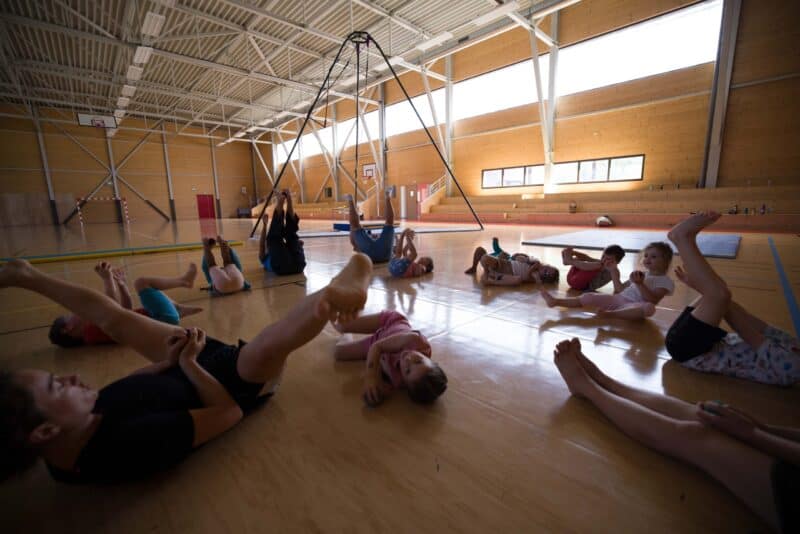 L’artiste a reçu deux groupes d’enfants, l’un allant de 3 à 6 ans et l’autre de 7 à 11 ans. Durant ces ateliers, différentes disciplines circassiennes ont été abordées, telles que le jonglage, les portés, l’acrobatie ou encore le trapèze fixe. A travers ces découvertes, les enfants ont été amenés à travailler différentes compétences telles que l’équilibre, les repères dans l’espace, l’imagination et la création, en lien avec le projet artistique. Le sens du jeu, de la collaboration et de l’écoute collective ont aussi été des volets de la transmission, ces sujets faisant partie de l’univers de l’artiste.